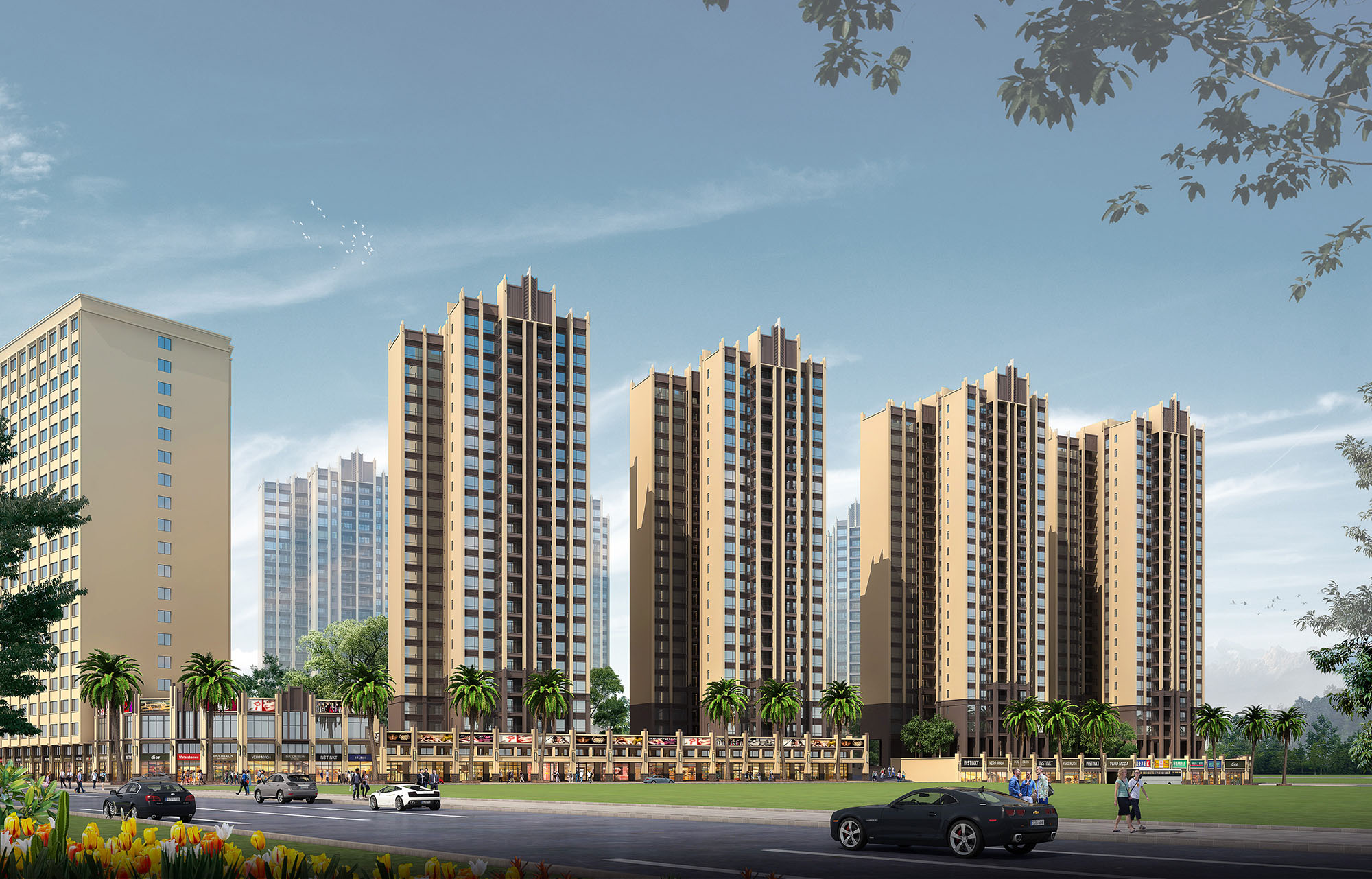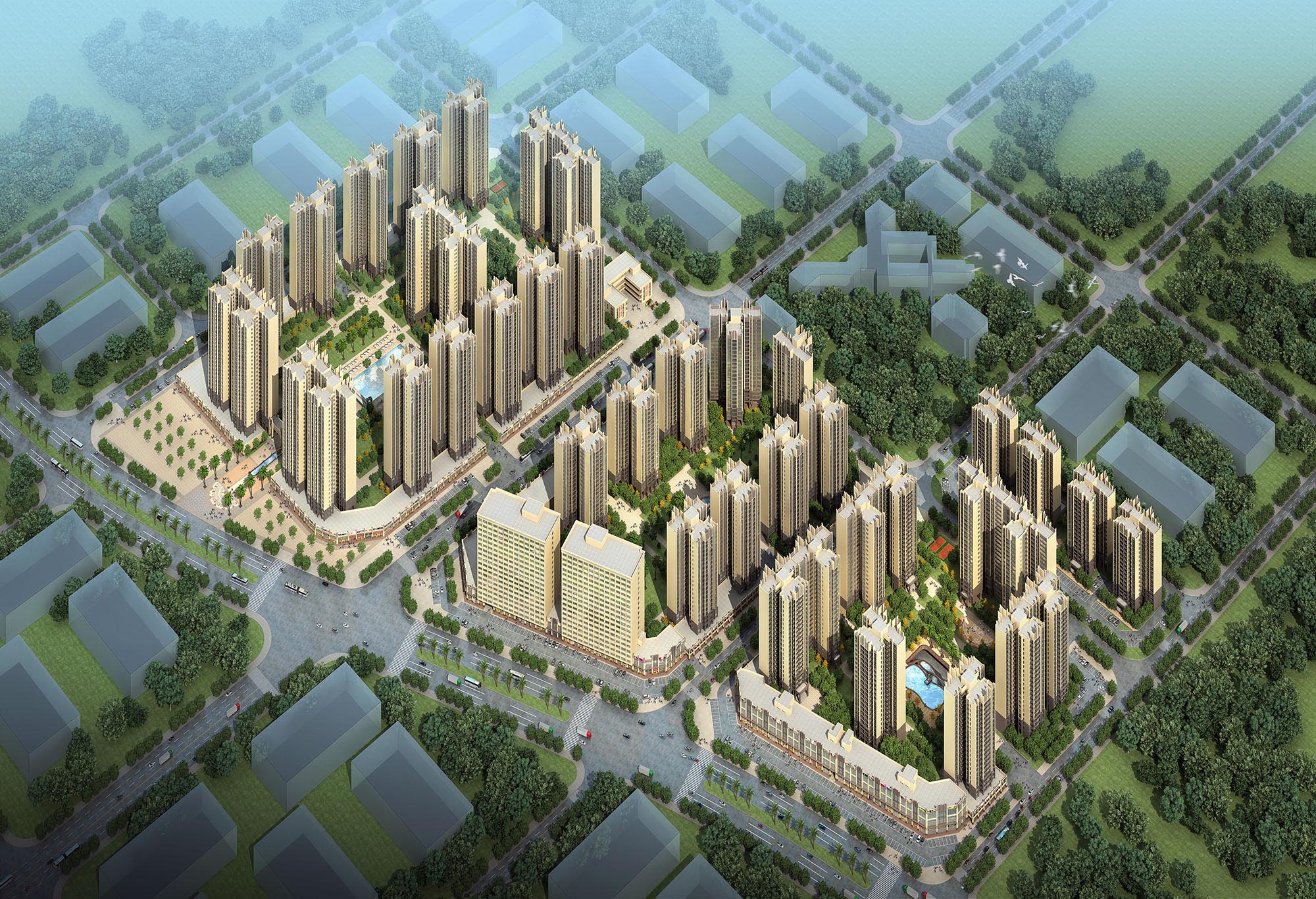 2) Rationality and comfort: in addition to the basic factors such as sunshine and ventilation, the residential design also focuses on the obvious Zoning: from the perspective of residential function and privacy, and based on the basic living rules of people, it fully ensures the internal and external, dynamic and static, day and night, and pollution zoning, which meets the psychological and physiological needs of residents. Landscape windows are used in the design of single residential units; The combination of landscape balcony and garden; Design of overhead courtyard on the first floor, etc. The facade design adopts artdeco (decorative art) architectural style, highlighting the sense of line, straightness and times of the building, and reflecting the distinctive high-end temperament of the community.