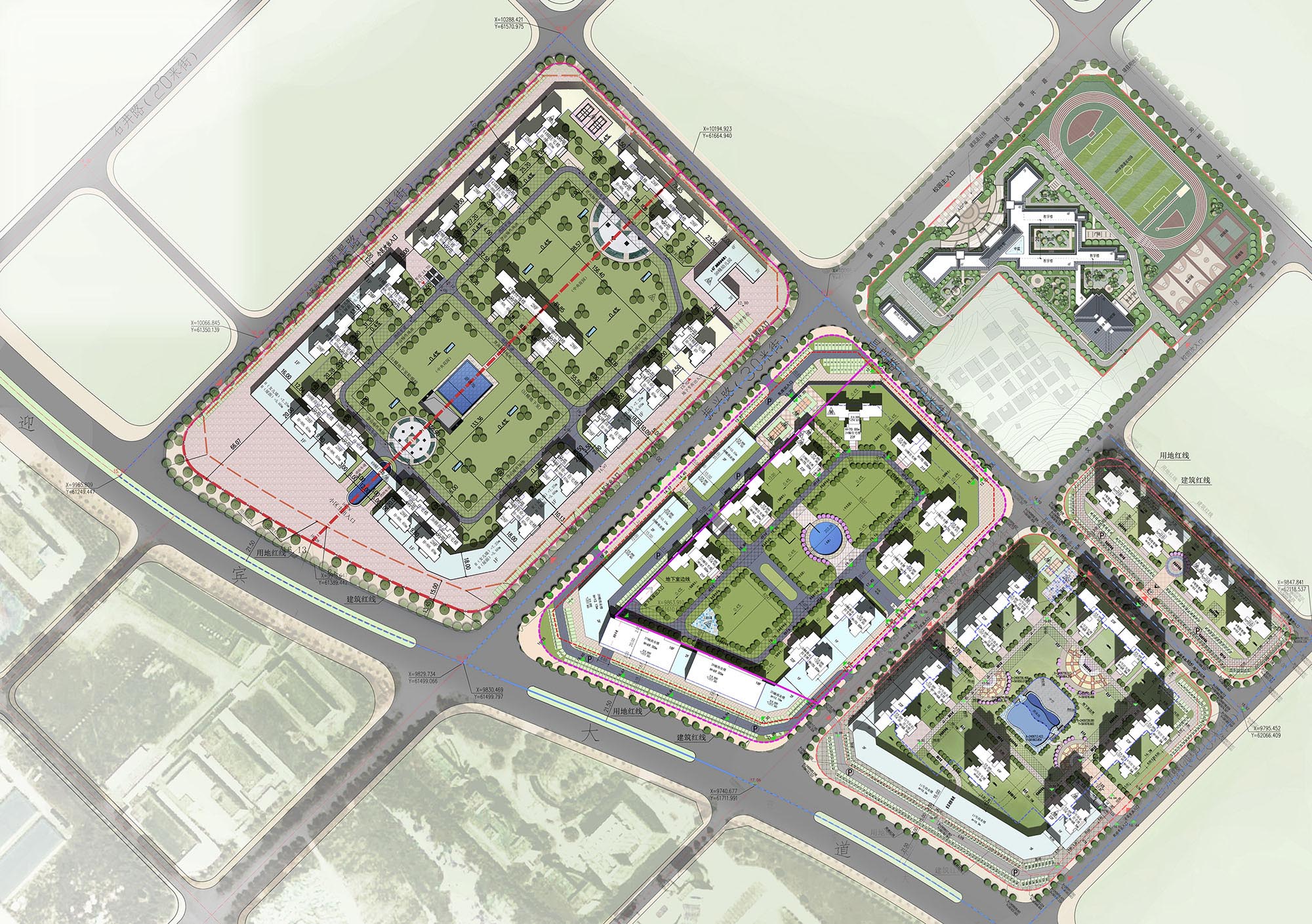 The project is located in the new land-use village in the north of the section from the exit of Yingbin Avenue Expressway to zhanggongqiao in the county. Except for the existing main road Yingbin Avenue in the southwest, the rest are planned roads. The South and north sides are planned residential land, the east side is existing residential houses, and the west side is existing commercial, school, residential and industrial land. Each land in the base is a relatively regular quadrangle. The absolute elevation of Yingbin Avenue in the south of the existing terrain is 15.90-17.34 meters, and the elevation of other focal points in the site is about 8.49-23.50 meters, which is relatively flat. The residential design reflects the diversity, rationality and integration of regional environment, which is specifically shown in: