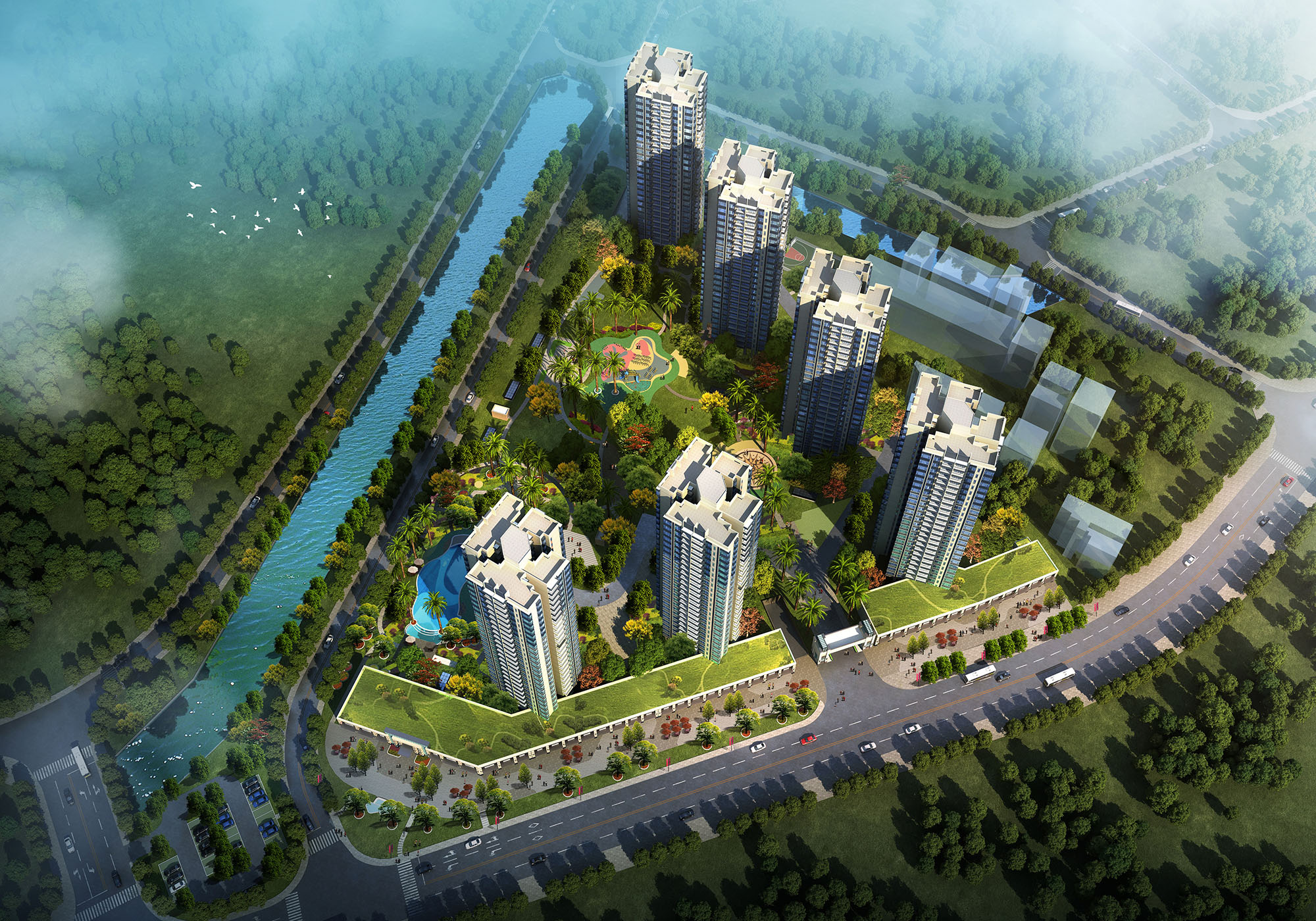 The project has a large land scale, including 6 23-storey residential buildings, 52 three-storey residential buildings and commercial buildings along the street. The enclosed layout enables the park to meet the building density. Under the premise of greening rate and parking space, create the largest landscape and sunshine expansion surface. Located in Shatian Town, Dongguan City, lot 010 (hy-30) in 2015 has a land area of 37964.33㎡, which requires residential and commercial design. The site selection environment of the project is good, and the land is approximately triangular.
