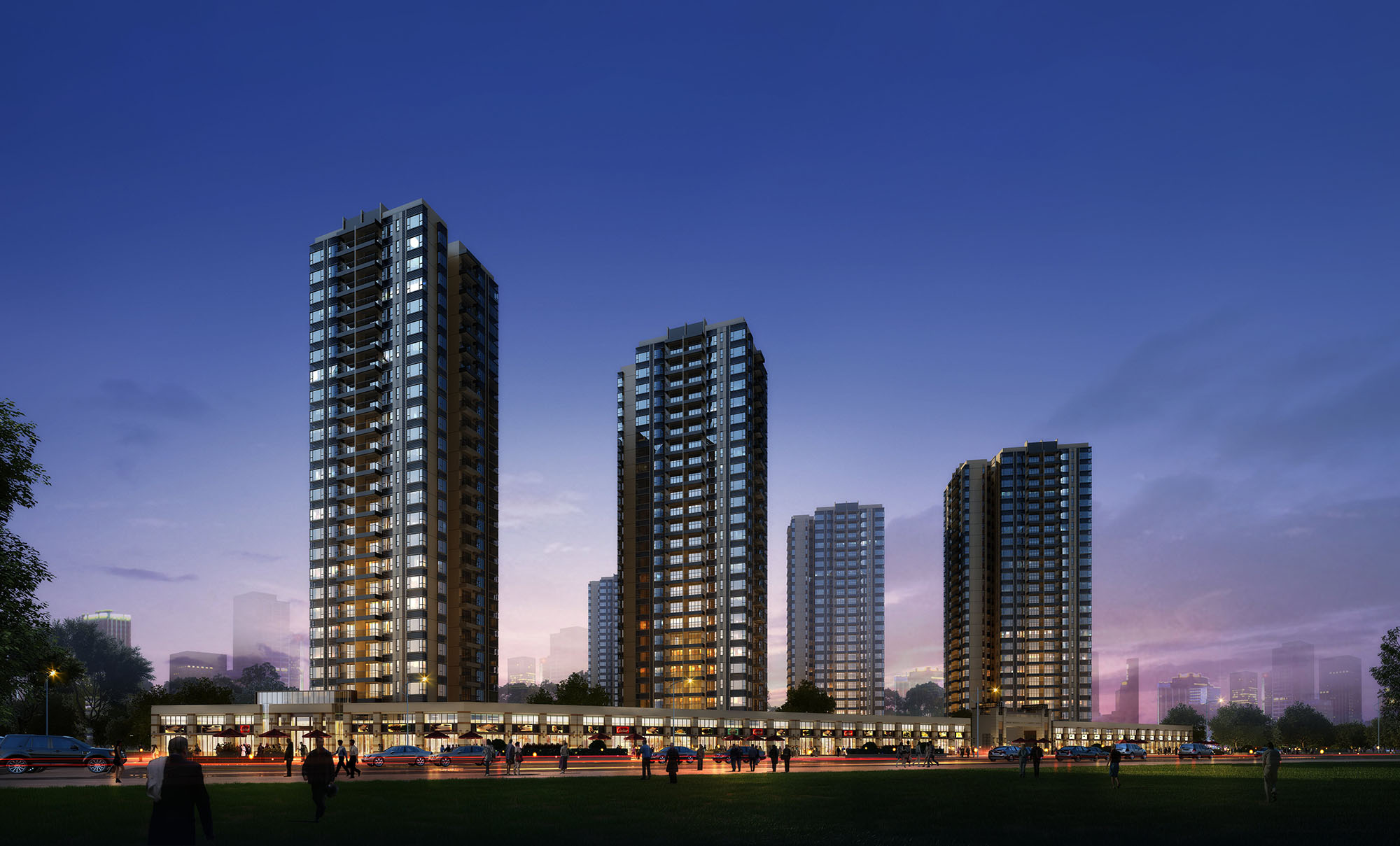 In the overall layout, the high-rise residential buildings are scattered in the north and East, the low-rise residential buildings are arranged in the southwest of the land, and the low-rise commercial buildings are arranged along the street in the east of the land, so as to jointly enclose the internal courtyard of the community and ensure a quiet environment in the community. Through rational combing and combination of architectural texture, the facade design makes the facade become the natural expression of architectural life, showing the flow characteristics of architecture and life, so that the building can not only adapt to the user's demand for building space controllability, but also adapt to the surrounding overall environment, and become a part of the harmony of the park.
