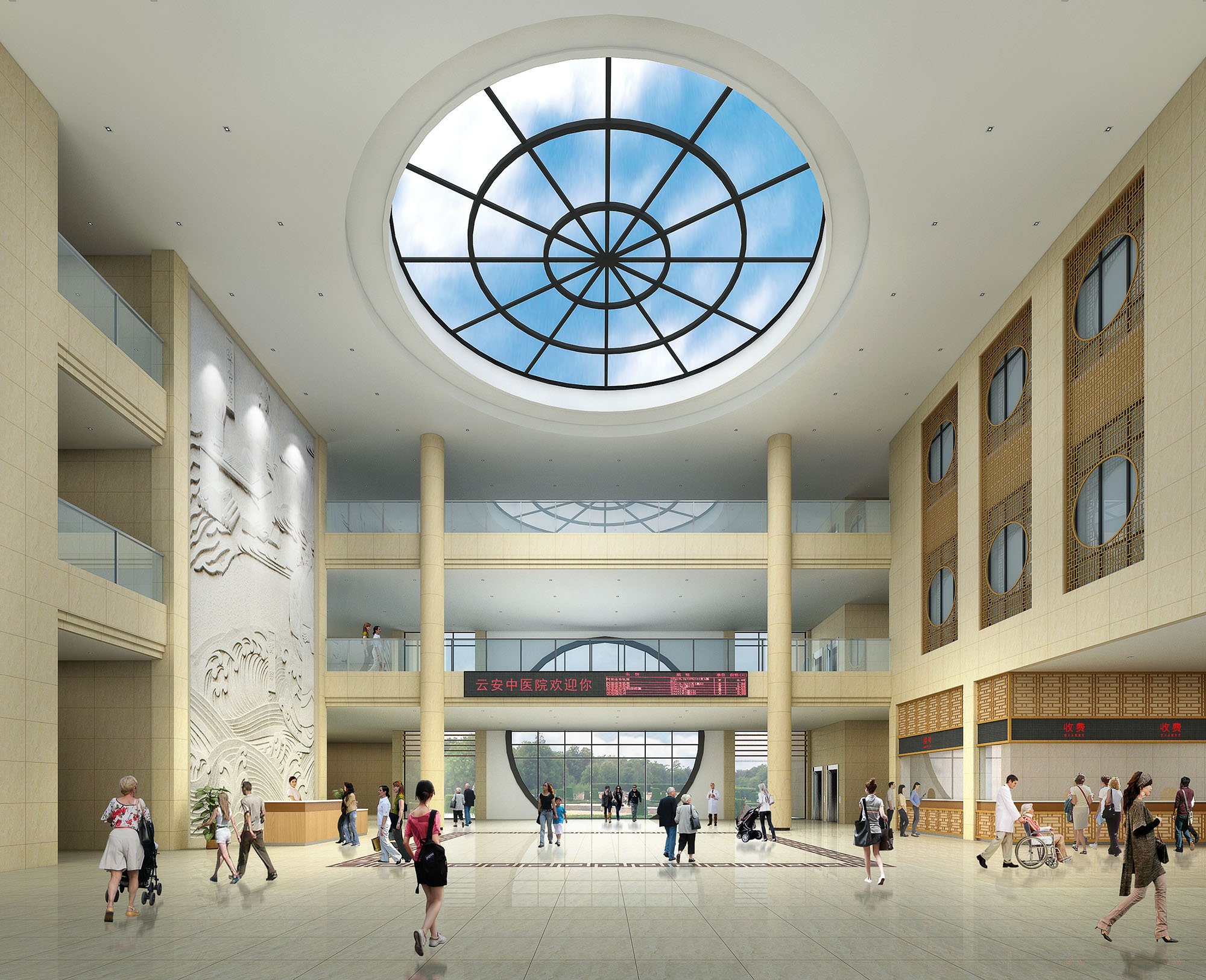 2) The outpatient, medical technology and inpatient buildings are the main buildings of the TCM hospital. In the design, three buildings are combined, with the outpatient building in the south and the inpatient building in the north (the emergency room is located on the first floor, with a separate entrance). The north-south connection of the building is set in the middle of the total land, symmetrically arranged with the central axis, reflecting the word "中" and echoing with traditional Chinese medicine. It saves land space and provides convenience for the use of functions, so that medical staff and patients have a clear flow of people, without interfering and interspersed with each other, and the main building has good orientation, ventilation, sunshine, hygiene, isolation and protection. In front of the main building, there are transceivers and guards at the entrance of the gate, the center is the square, and the two sides of the square are parking lots. The south side of the campus is the first floor power distribution room, and the north side is the first floor garbage room, laundry room and oxygen production room.